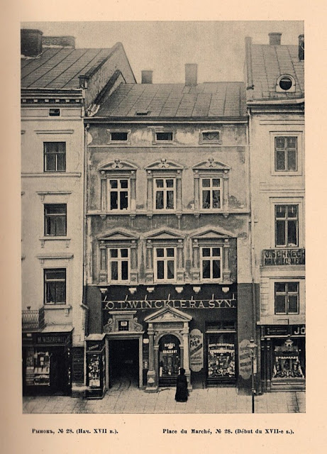 | Площа Ринок, 28 (з книги В.Верещагіна “Альбом старого Львова”, 1917 р.) |
